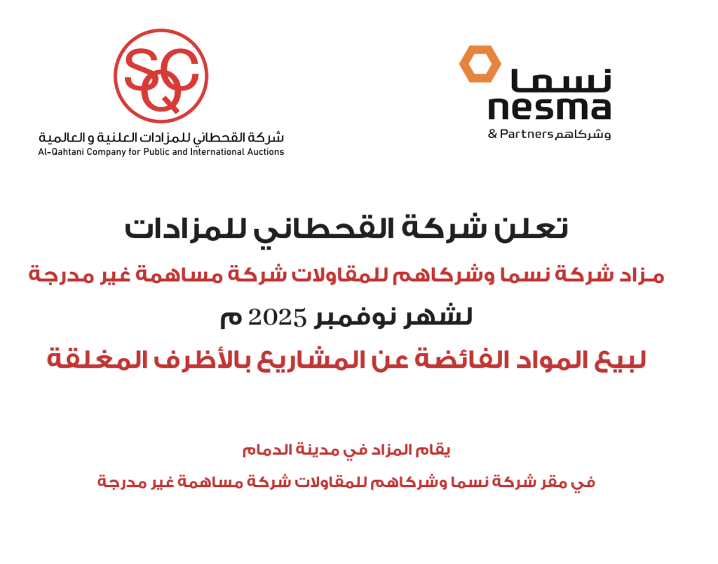 Al-Qahtani Auction Company is pleased to announce its upcoming auction for Nesma & Partners Contracting Company Ltd.