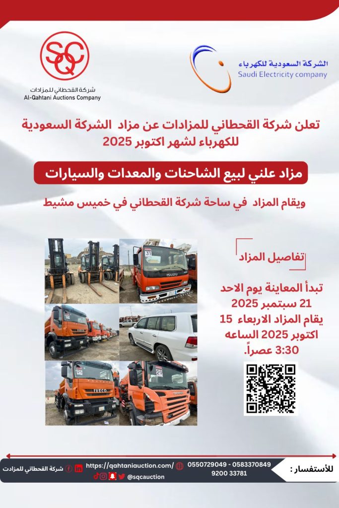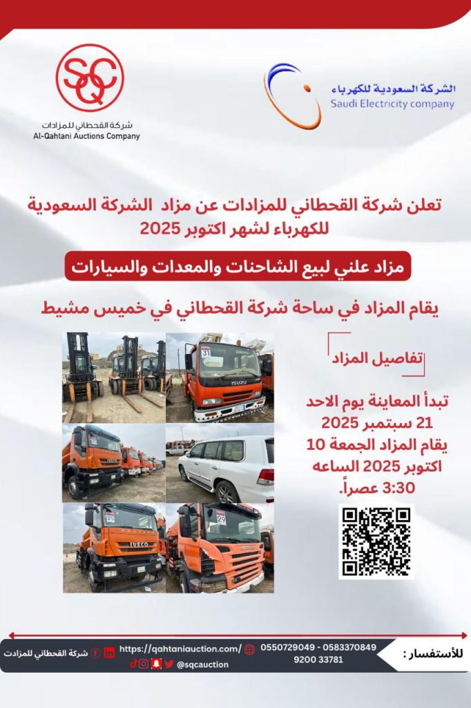 تعلن شركة القحطاني للمزادات عن مزادها القادم للشركة السعودية للكهرباء