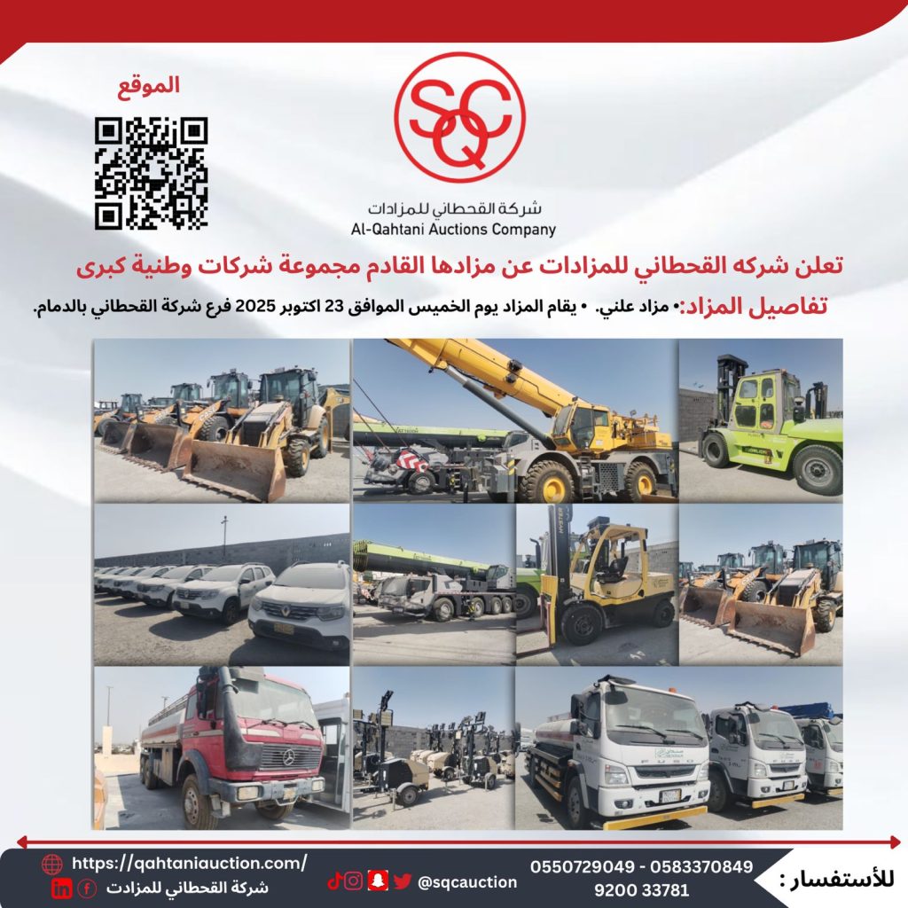 تعلن شركة القحطاني للمزادات عن مزادها القادم لإحدى كبرى الشركات الوطنية
