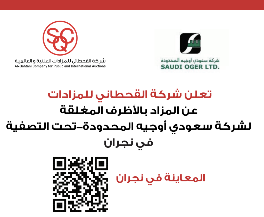 Al-Qahtani Auction Company announces its upcoming auction for Saudi Oger Ltd. – Under Liquidation in Najran.